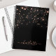 Create your own personalized black and rose gold diamond sparkle planner with your custom modern handwritten script name.