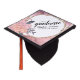 An elegant rose gold and gold foil cap topper with pink roses floral and ribbon cap topper with script signature and personalize for any graduating class year.