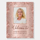 Elegant Modern rose gold glitter metallic and Personalized Photo 65th Birthday Welcome Foam Board. This Girly Adult feminine SIXTY FIVE OR ANY AGE Birhday party sign featuring a stylish handwritten calligraphy script, blush pink or rose gold faux brushed metallic foil background with loose glam glitter frame around. Ideal for a feminine adult or girly milestone birthday celebration, this perfectly captures the essence of a modern rose gold or blush pink glitter sparkle girly birthday party.