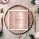 Elegant Modern Sparkle Rose gold glitter metallic Personalized Monogram Name 80th (or ANY AGE) Birthday Party Paper Napkins. This Girly Adult feminine Birhday party design featuring a Monogram Name in a stylish handwritten calligraphy script and date and age on blush pink or rose gold faux brushed metallic foil look background with loose glam glitter frame. Ideal for a feminine adult or girly milestone birthday celebration, this perfectly captures the essence of a modern rose gold or blush pink glitter sparkle girly birthday party.