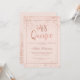 Mis quince written with rose gold typography. A modern, pretty chic and elegant rose gold glitter shower ombre with pastel blush pink color block Quinceañera birthday party invitation with a geometric rose gold frame.