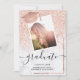 Yes, you can print on the back of your invitation for free! Most designs already have a corresponding design on the back that can be personalized using the Design Tool and going to Layers. This is a great way to communicate more information or further personalize your Rose Gold Glitter Graduate Photo Cap Graduation Invitation. The option is really up to you.