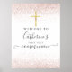 Featuring elegant rose gold glitter and a simple gold crucifix, this chic first holy communion welcome sign can be personalized with your special event information. Designed by Thisisnotme©