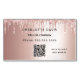 An elegant, feminine and modern business card magnet. A rose gold metallic looking background, decorated with rose gold, pink faux glitter drips, paint dripping look. Personalize and add your name, text/title and contact information. Add your website url or a website account to the QR code. Black letters.