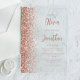 The left-hand edge of this elegant modern wedding invitation features a rose gold faux glitter border. The customizable text combines dusty rose script and sans serif fonts on a clear background.