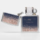 Rose Gold Glitter Monogram Initial Script Name Navy Blue, Faux glitter borders are at the top and bottom, with your initial in a stylish script with swashes and your name.