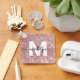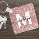 This cute square keychain brings a fun and modern touch to your everyday essentials. The design features a bold white monogram initial centered on a faux rose gold glitter background with soft blush pink hues blended in, giving it a dreamy and feminine vibe. Your name is displayed across the monogram in elegant black script. The same stylish design appears on both sides for a polished, cohesive look.