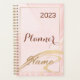 A faux rose gold metallic looking background. Personalize and add a year, and add a name. The name is written in gold with a large modern lettered style script. Perfect for school, work or organizing your personal,family life.