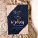 Rose Gold glitter color block typography on customizable navy blue and faux rose gold geometric stripes chic wedding , perfect for elegant, luxurious wedding, affordable budget wedding .