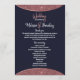 Elegant, chic, and modern faux printed rose gold glitter and rose gold foil circular color block cutout on navy blue and faux rose gold brush script text, wedding program fans. This classic and sophisticated design is perfect for the trendy and stylish marrying couple. Personalize with your own message on the front as well as a customized monogram initial on the back. All photo print design.
