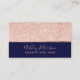 Modern makeup hair typography with rose gold glitter and foil geometric stripe color block on customizable navy blue.