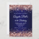 Rose Gold Glitter Navy Blue Monogram 40th Birthday Invitation