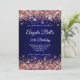 Rose Gold Glitter Navy Blue Ombre Fancy Monogram Invitation