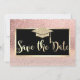 Elegant gold glitter graduated cap and confetti on a rose gold glitter ombre background.