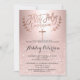 Rose gold glitter ombre metallic first communion invitation