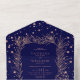 Rose gold glitter pine, confetti navy blue wedding all in one invitation