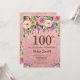 Rose Gold Glitter Pink Floral 100th Birthday Invitation