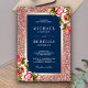 Rose Gold Glitter Pink Floral Navy Blue Wedding Invitation