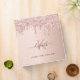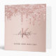 A rose gold colored faux metallic looking background. Rose gold, pink faux glitter drips, paint dripping look as decoration. Personalize and add a name, monogram letter and a text on the front. The name is written a modern brown colored hand lettered script with swashes. Add your text on the spine. Perfect for school homework, back to school.