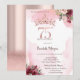 Elegant glitter crown and flowers on rose gold glitter ombre party invitation.