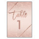 rose Gold typography on customizable blush pink rose gold glitter ombre and faux rose gold geometric stripes chic table number wedding , perfect for elegant, beach wedding,