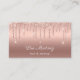 Make a good impression with this chic business card featuring rose gold faux glitter dripping from the top and your name in a pretty white script against a rose gold background. Perfect for beauty salons, makeup artists, hair stylists and estheticians.