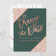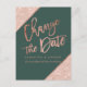 rose Gold typography on customizable deep forest green rose gold glitter color block, and faux rose gold geometric stripes chic change the date wedding , to announce the postponement of your wedding and new plans