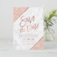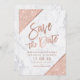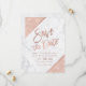 Rose Gold typography on white marble rose gold glitter color block, and faux rose gold geometric stripes chic save the date wedding , perfect for elegant, stylish wedding,