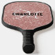 Stylish rose gold glitter white script monogram black name women's pickle ball paddle. Personalize with your name.