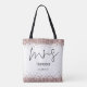 Rose Gold Glitter Script Mrs Name Date Bride Tote Bag