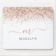 Rose Gold Glitter Script Name Monogram Initial Mouse Pad