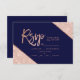 Rose Gold typography on customizable navy blue rose gold glitter color block, and faux rose gold geometric stripes chic rsvp wedding , perfect for elegant, stylish wedding,