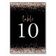 Rose Gold Glitter Script Wedding Black. Table is in a set handwriting style script and your table number beneath with faux glitter borders and classic black background. . Easily personalise the number. The same design is also on the back.