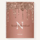 Enjoy this elegant sketch book design featuring your name and monogram or initial with chic and sparkly rose gold copper glitter drips over a rose gold foil background.