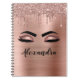 Rose Gold Glitter Sparkle Eyelashes Monogram Name Notebook
