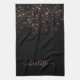 Create your own personalized black and rose gold diamond sparkle kitchen towel with your custom modern handwritten script name.