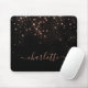 Create your own personalized black and rose gold diamond sparkle mouse pad with your custom modern handwritten script name.