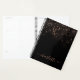 Create your own personalized black and rose gold diamond sparkle planner with your custom modern handwritten script name.