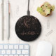 Create your own personalized black and rose gold diamond sparkle wireless charger with your custom modern handwritten script name.