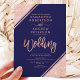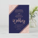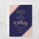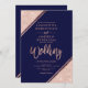 Rose gold glitter stripes script navy blue wedding invitation