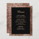 An elegant modern rose gold glitter and black wedding menu. This menu is part of a complete wedding invitation set.