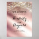 Faux rose gold glitter foil and string of lights wedding welcome sign posters