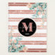 Rose Gold Glitter + White Stripe Floral Monogram Planner