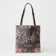 Rose Gold & Gray Tropical Palm Leaves Bride Tote Bag