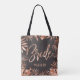 Rose Gold & Gray Tropical Palm Leaves Chic Rose Gold Modern Typography with Customizable Background Color! Choose any custom color by clicking the "customize further" link below the text personalization areas. Scroll down on the right side of the editor past the text and images and pick from the colors or enter your custom color code! Stylish Wedding Monogram Tote Bags, With trendy Hand Lettered Script font! ~ Check my shop to see the entire wedding collection with this design!