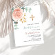 Rose gold greenery cross first holy communion invitation postcard
