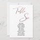 This simple, elegant design features "Table Six" rendered in a modern handwriting font and embellished with a faux-metallic rose gold effect. The font for names can be changed if you wish. As can the background color. Details will appear on both front and back. // 151 //