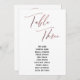 This simple, elegant design features "Table Three" rendered in a modern handwriting font and embellished with a faux-metallic rose gold effect. The font for names can be changed if you wish. As can the background color. Details will appear on both front and back. // 151 //