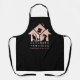 Modern cleaning services apron features cleaning equipment inside rose gold house icon, name and title on the front on a black background. Perfect for domestic and industrial cleaning services.