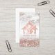 Modern cleaning services business card features cleaning equipment inside rose gold house icon, name and title on the front on a marble and faux glitter background. Perfect for domestic and industrial cleaning services.